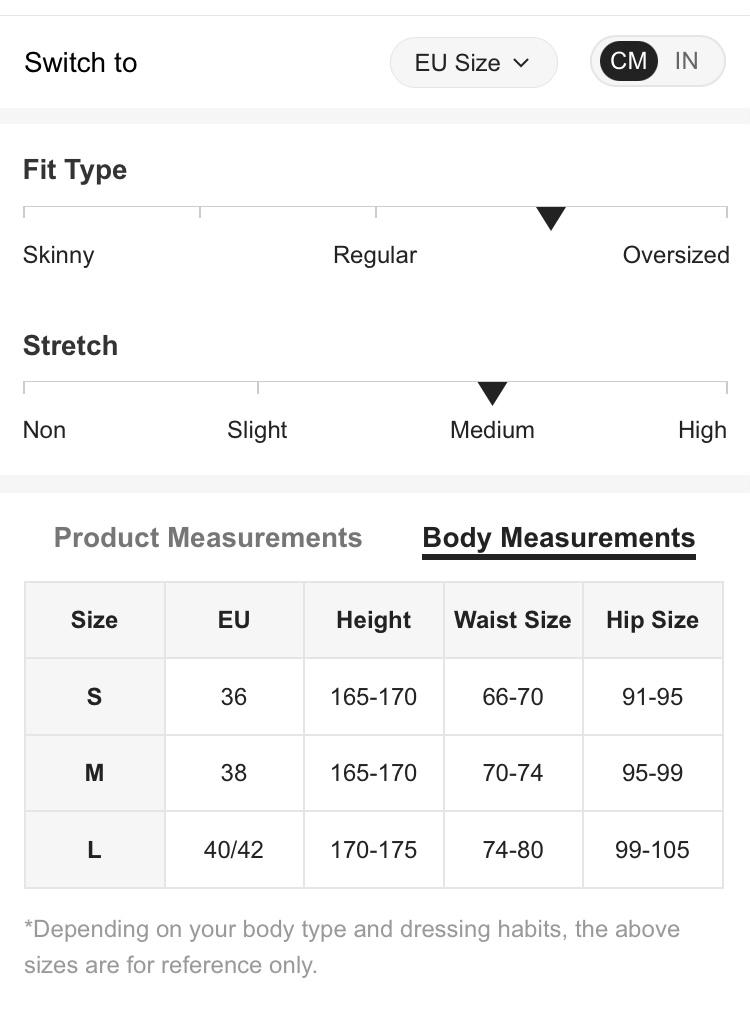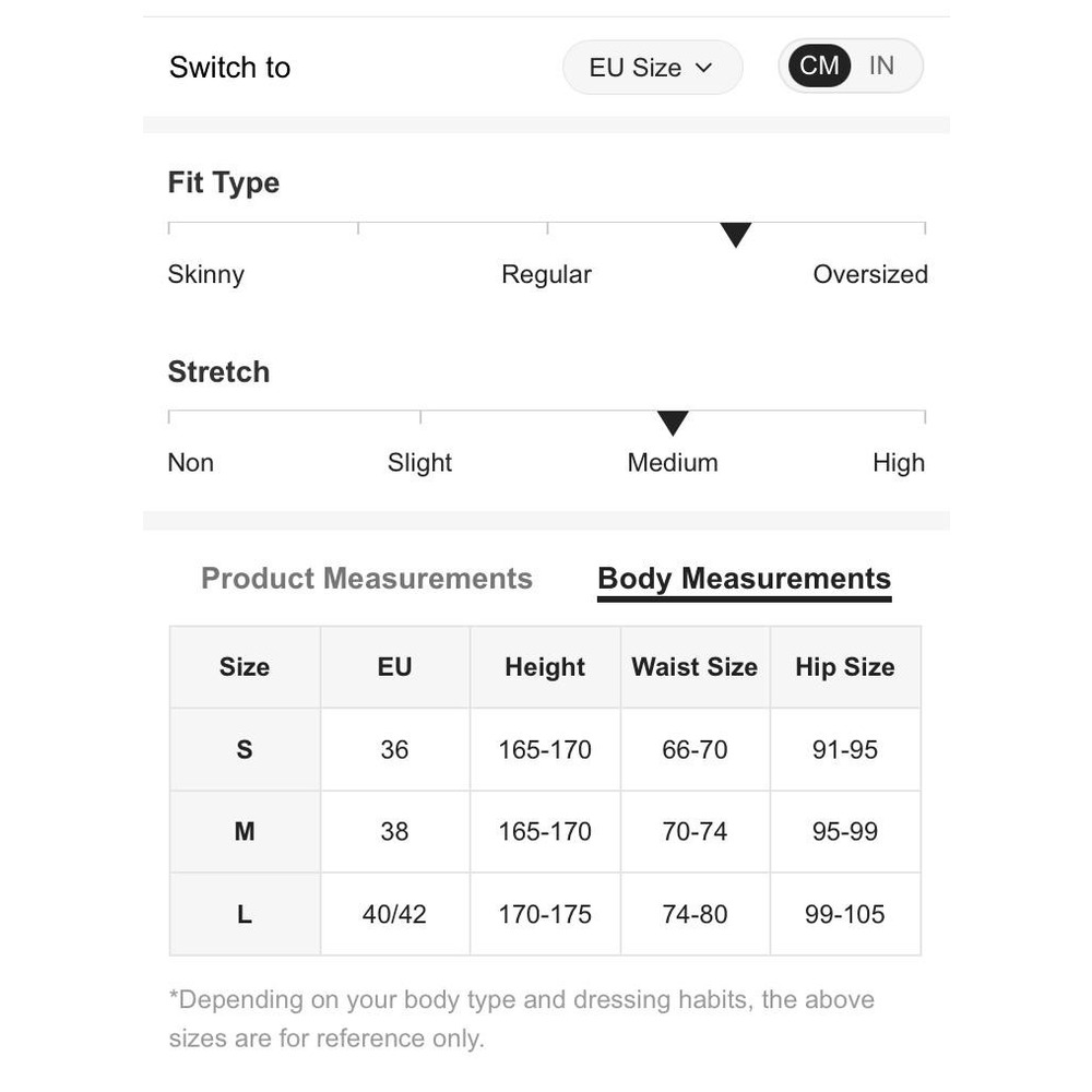 Modelin üzerindeki S (EU36) bedendir.