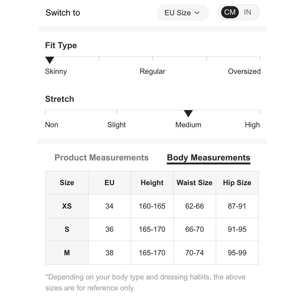 Modelin üzerindeki S (EU36) bedendir.
